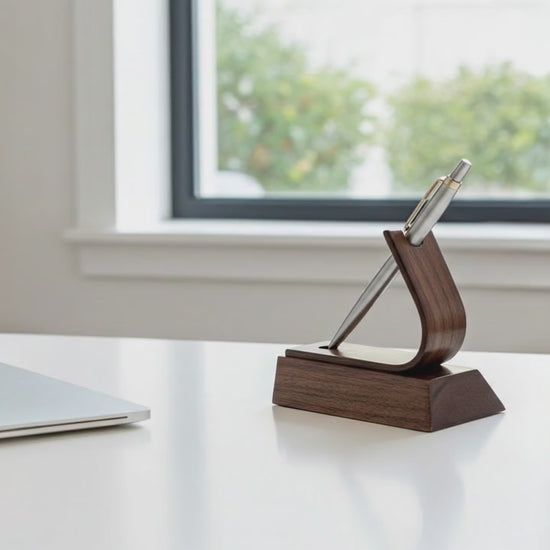 The Swiss Luxury Pen Holder is a meticulously handcrafted desk accessory carved from premium solid black walnut. Designed to elegantly display and protect your most treasured fountain pens, rollerballs, and fine writing instruments, this single-pen stand combines minimalist luxury with practical functionality.